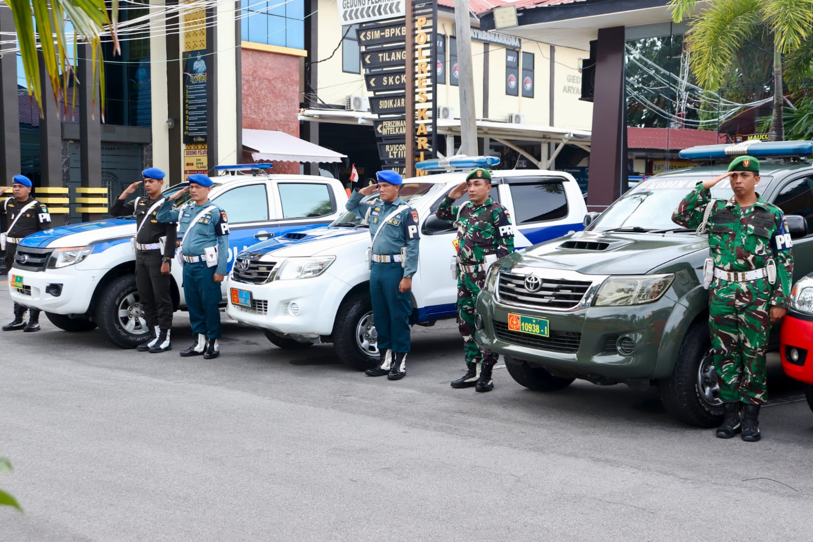 Apel gelar pasukan diikuti oleh unsur TNI, Polri, serta instansi terkait dan berlangsung aman, tertib, serta lancar hingga selesai.