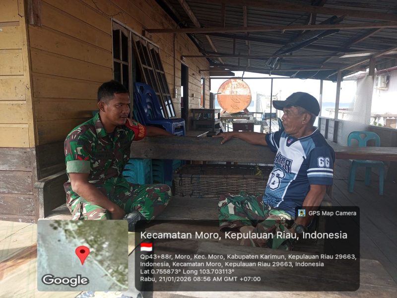 KARIMUN – Babinsa Desa Keban Koramil 02/Moro Kodim 0317/Tanjung Balai Karimun, Praka (Kopda) Randi Agus Satria, melaksanakan kegiatan komunikasi sosial (Komsos) bersama warga desa binaan pada Rabu, 21 Januari 2026, bertempat di Kampung Batu Ampar RT 03 RW 04, Kecamatan Moro.
