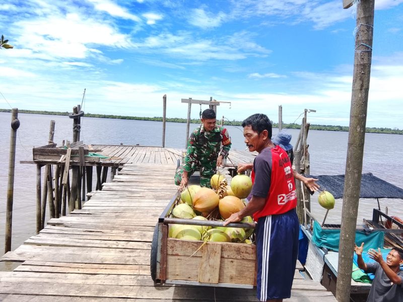 Kegiatan Komsos ini dilakukan di area pelabuhan tempat warga mengumpulkan dan menjual hasil panen kelapa yang akan dikirim ke Batam. Dalam kesempatan tersebut, Kopda Firdaus berbincang santai dengan para pedagang sambil mendengarkan aspirasi dan kendala yang dihadapi warga dalam aktivitas sehari-hari.