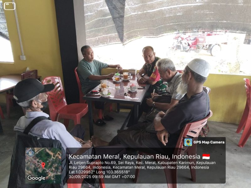 Tanjung Balai Karimun – Dalam rangka mempererat silaturahmi sekaligus mendukung program sosial di wilayah binaan, Babinsa Koramil 01/Balai Kodim 0317/TBK, Serda M. Sirait, melaksanakan Komunikasi Sosial (Komsos) bersama Ketua RW 02, Bapak Azwar, dan warga Paya Regas, Kelurahan Parit Benut, Selasa (30/9/2025).
