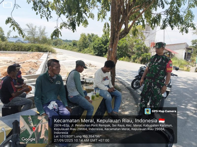 Karimun – Babinsa Kelurahan Parit Benut, Koramil 01/Balai Kodim 0317/TBK, Serda M. Sirait, melaksanakan kegiatan Komunikasi Sosial (Komsos) bersama warga binaan di wilayah RT 02/RW 03 Kelurahan Parit Benut, Sabtu (27/9/2025).