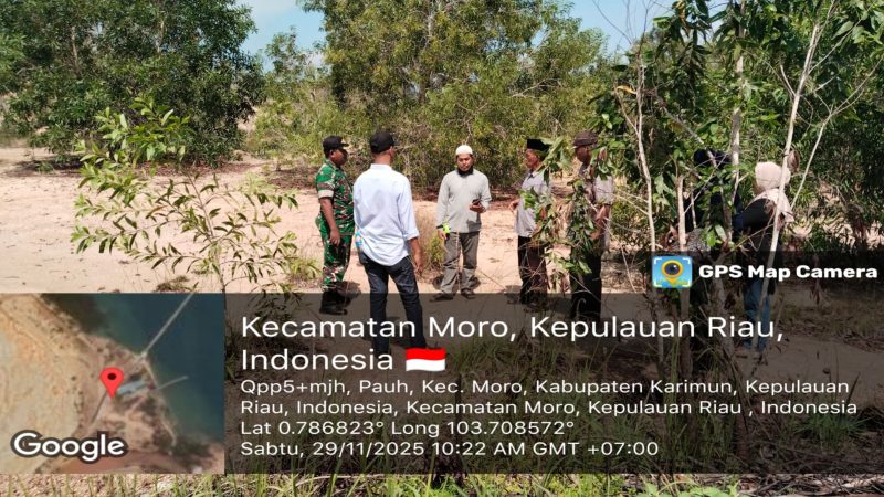 Moro, 29 November 2025 — Babinsa Desa Pauh Koramil 02/Moro Kodim 0317/TBK, Sertu Guslim, melaksanakan kegiatan pendampingan dan peninjauan lokasi rencana pembangunan Koperasi Merah Putih bersama pihak konstruksi dari Pemerintah Kabupaten Karimun pada Sabtu pagi, pukul 10.00 WIB.