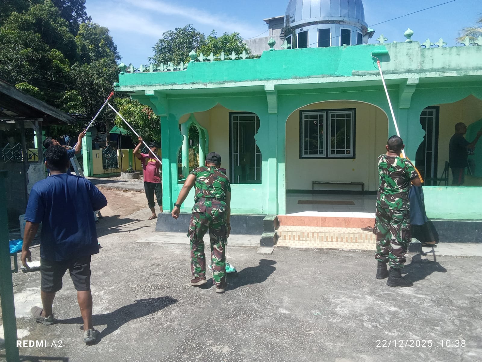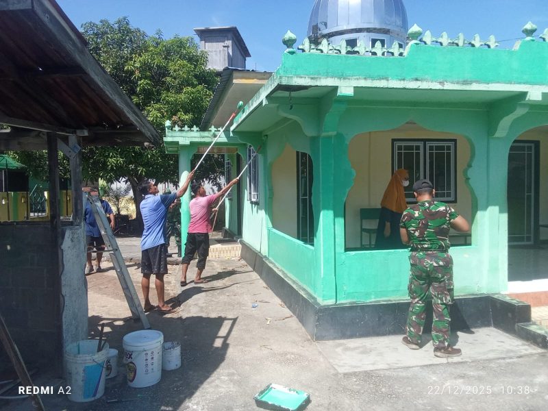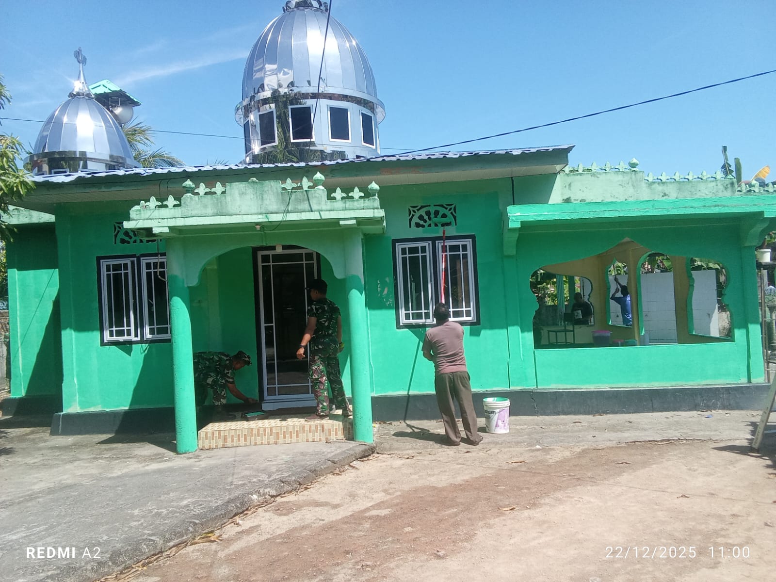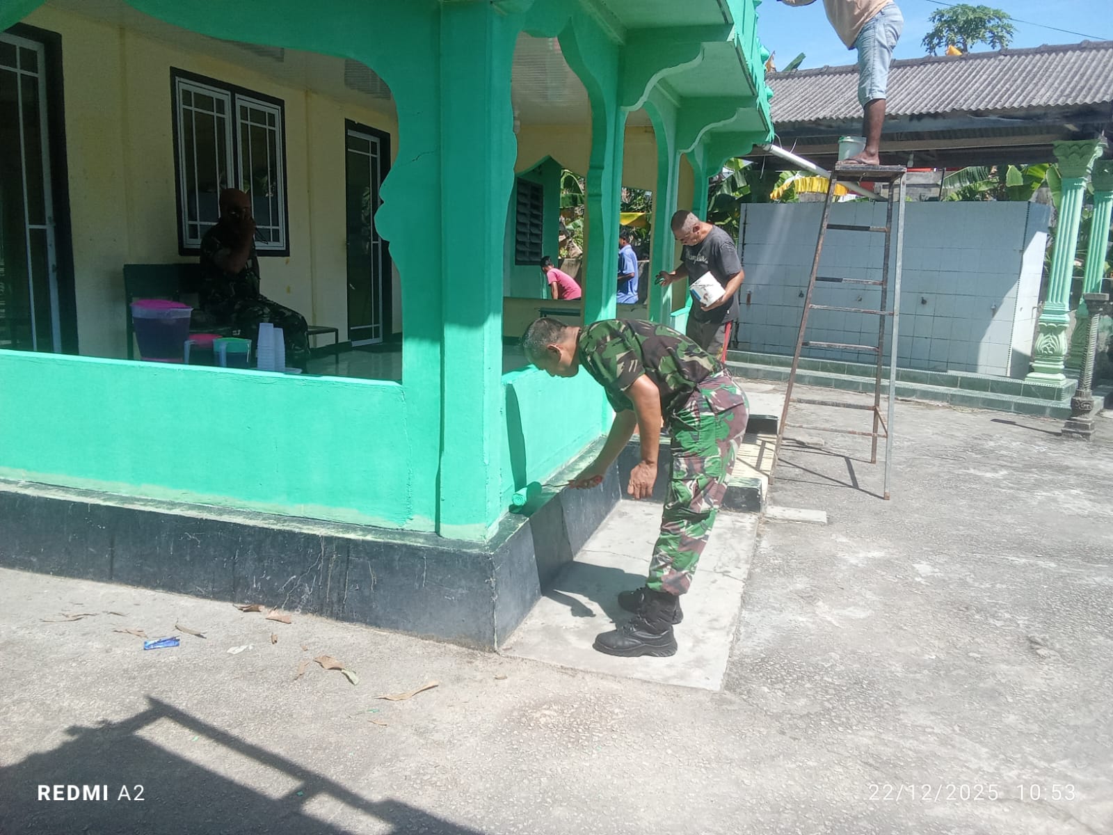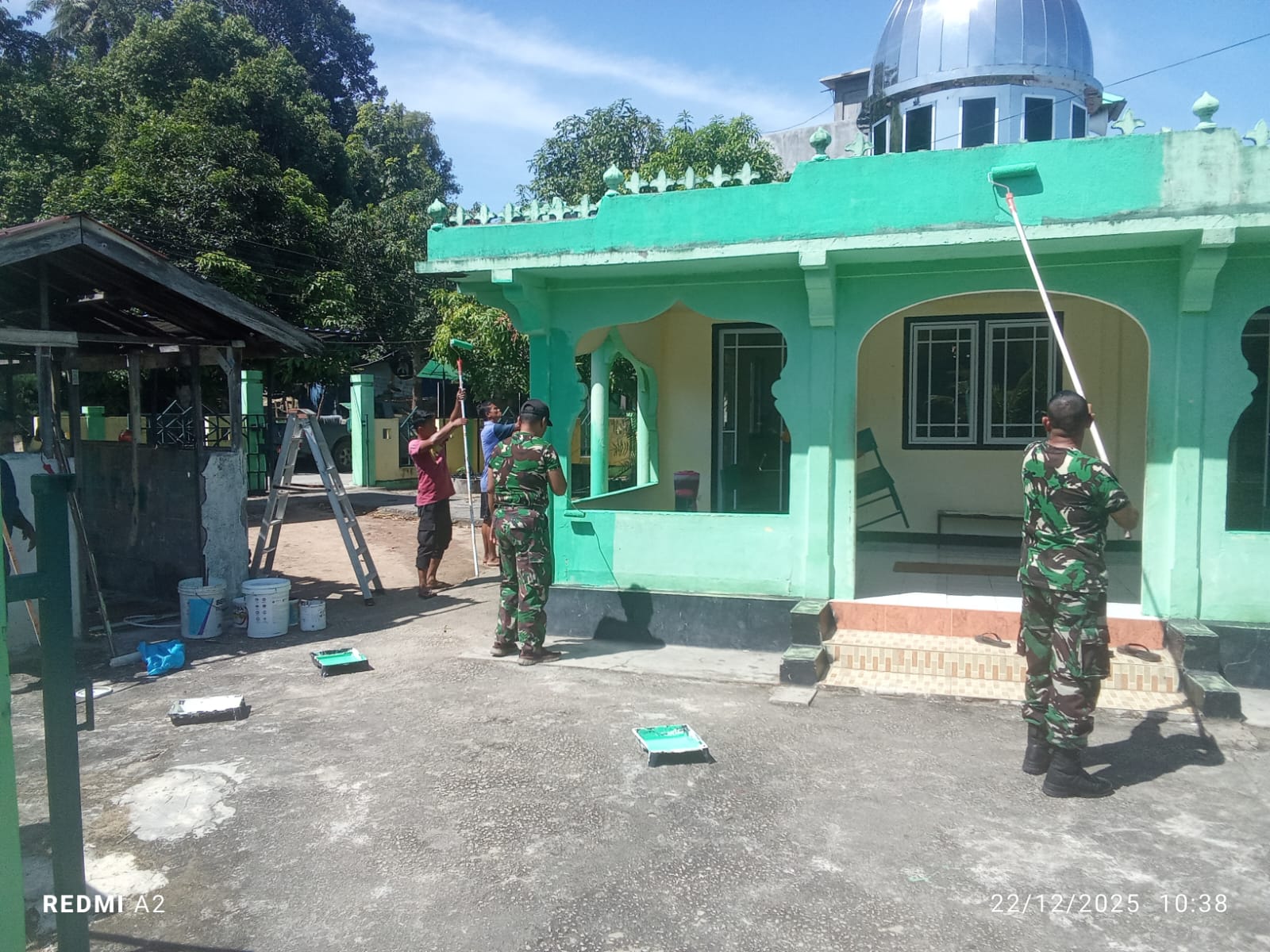 Babinsa Lubuk Semut Pimpin Gotong Royong Pengecatan Mushola Darul Iman