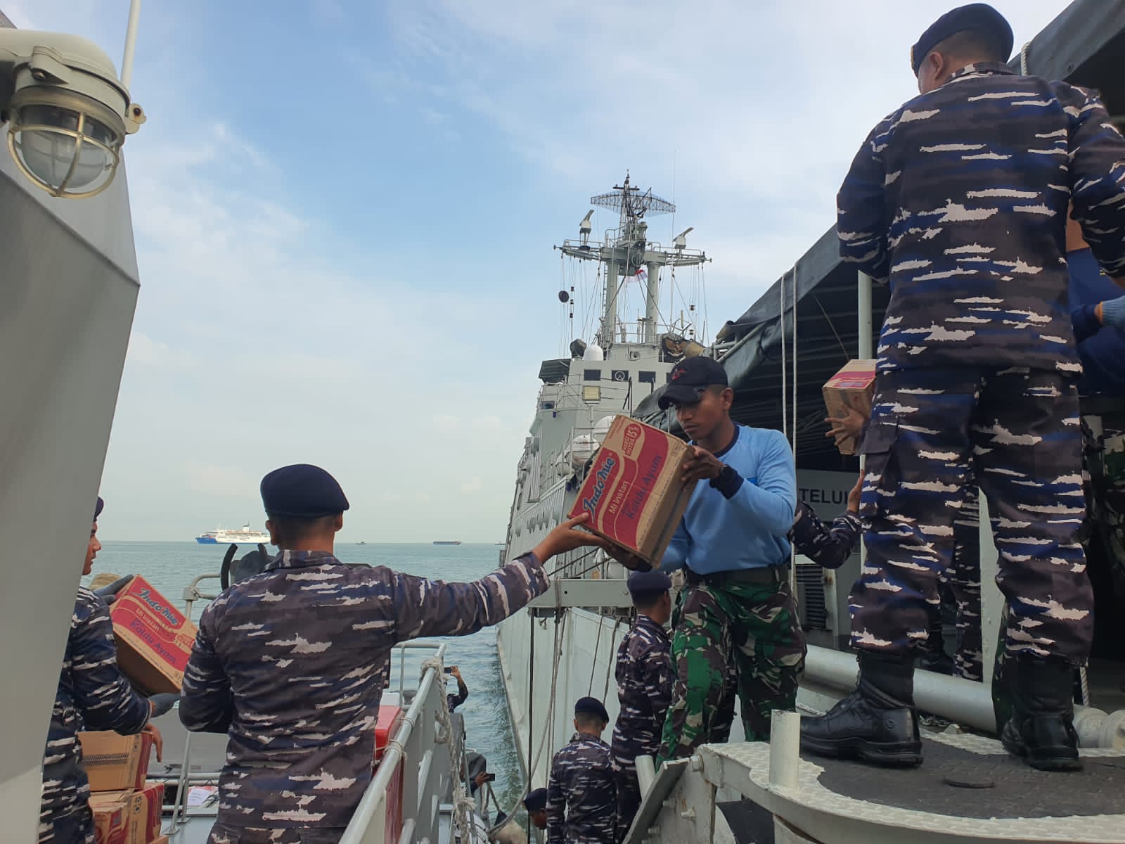 Seluruh logistik bantuan diberangkatkan dari Dermaga Mako Lanal TBK menggunakan KAL Pelawan menuju KRI Teluk Gilimanuk-531 yang sedang labuh jangkar di perairan Selat Gelam, Karimun. Kegiatan berlangsung dalam keadaan aman dan lancar.