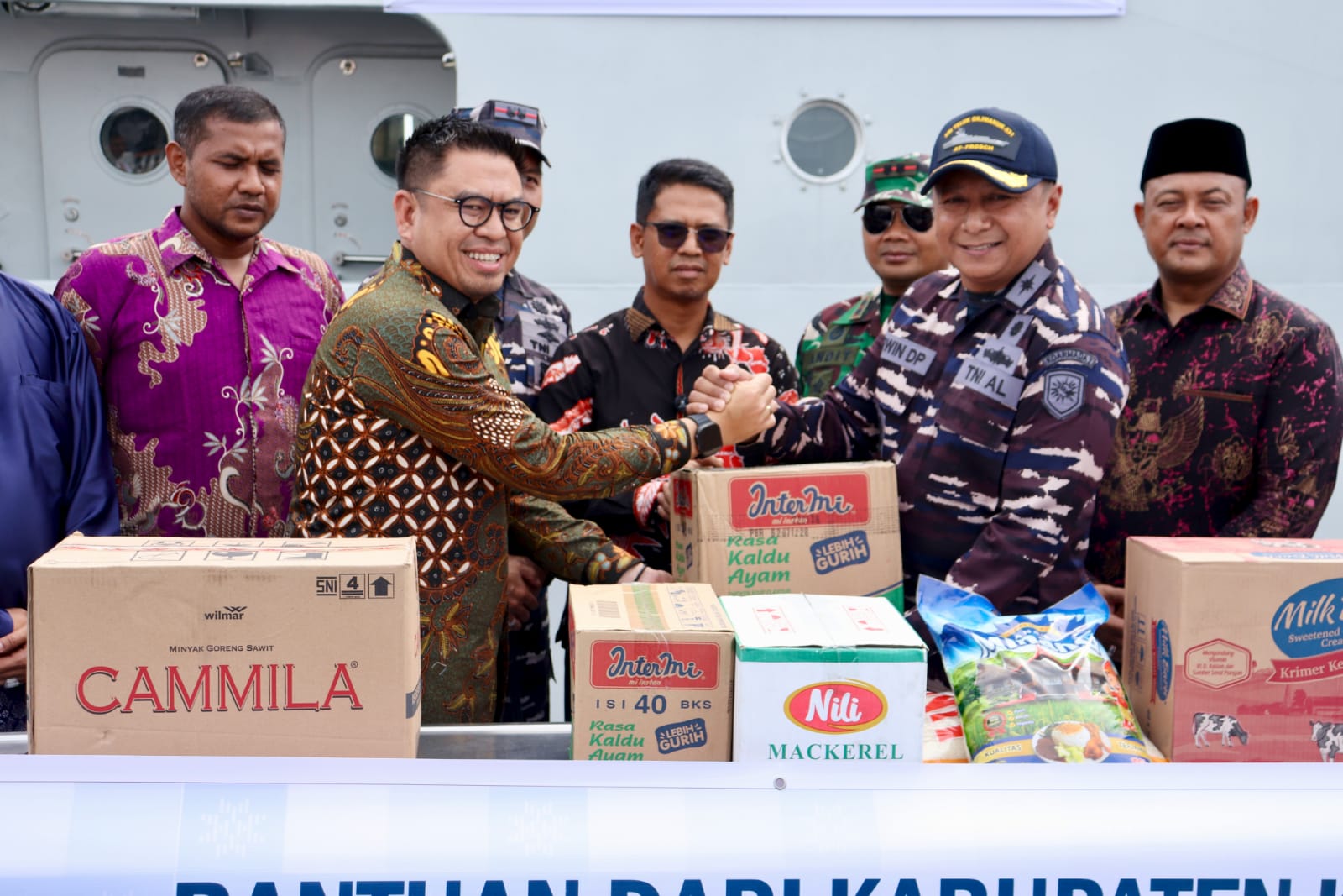 Dalam sambutannya, Bupati Karimun Iskandarsyah menyampaikan bahwa aksi sosial ini berawal dari spontanitas jajaran Pemerintah Kabupaten Karimun bersama Forkopimda dan masyarakat, setelah mengetahui adanya KRI Teluk Gilimanuk-531 yang melintas di perairan Karimun dalam misi kemanusiaan.