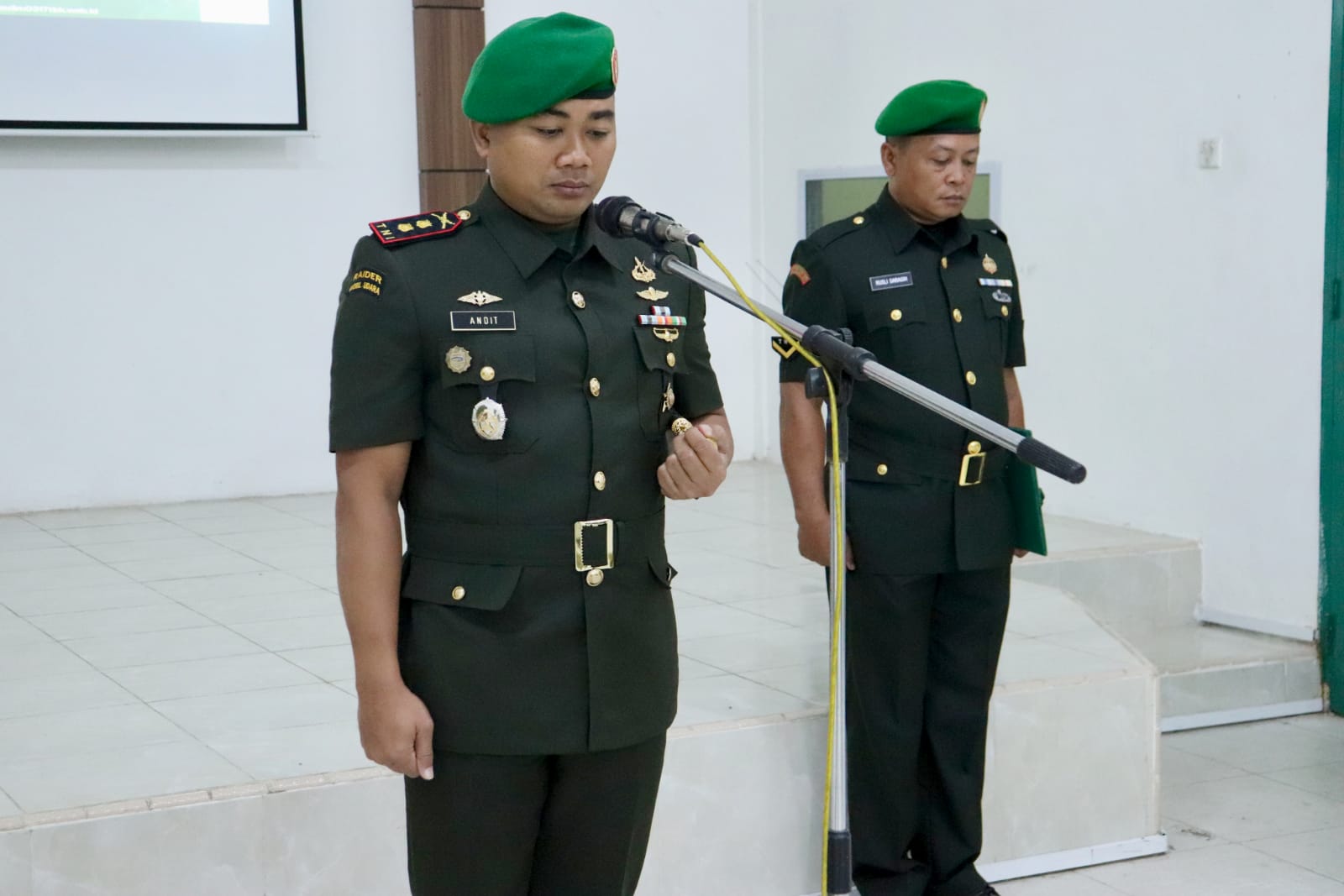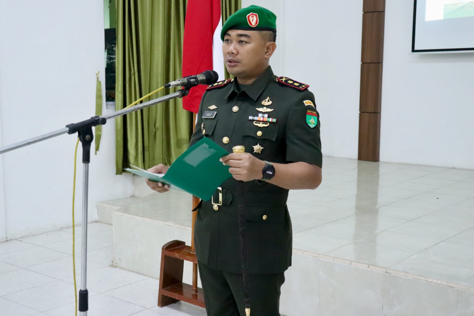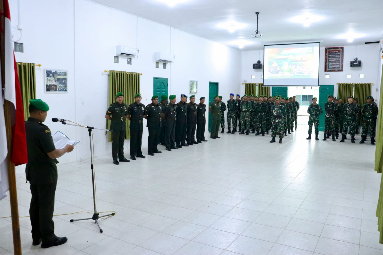 Komandan Kodim 0317/TBK Letkol Inf Andit Franata, S.I.P. memimpin pelaksanaan Upacara Peringatan Hari Juang Kartika ke-80 Tahun 2025 dengan tema “TNI AD Manunggal dengan Rakyat untuk Indonesia Bersatu, Berdaulat, Sejahtera dan Maju” yang dilaksanakan di Aula Makodim 0317/TBK, Senin (15/12/2025).