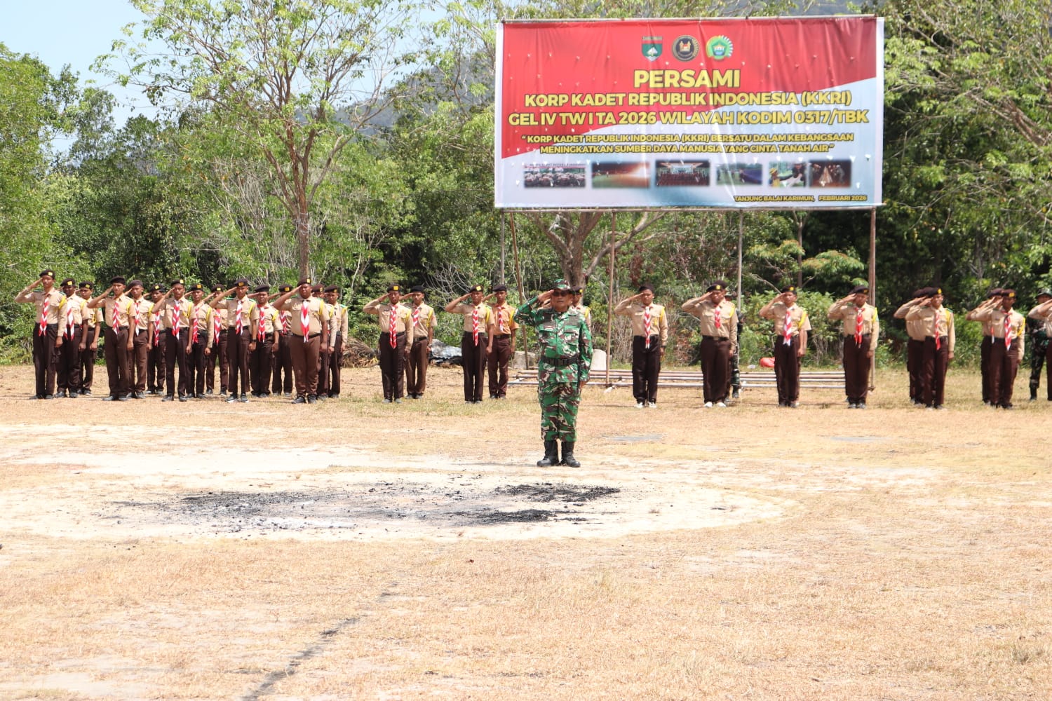 Karimun – Kasdim 0317/TBK Mayor Inf Istain Tamimi secara resmi menutup kegiatan Persami Korp Kadet Republik Indonesia (KKRI) Gelombang IV TA 2026 Wilayah Kodim 0317/TBK pada Minggu, 15 Februari 2026 pukul 10.30 WIB di Lapangan Kipan B Yonif 136/TS, Kelurahan Pasir Panjang, Kabupaten Karimun. Upacara penutupan berlangsung khidmat dan diikuti 100 peserta kadet.