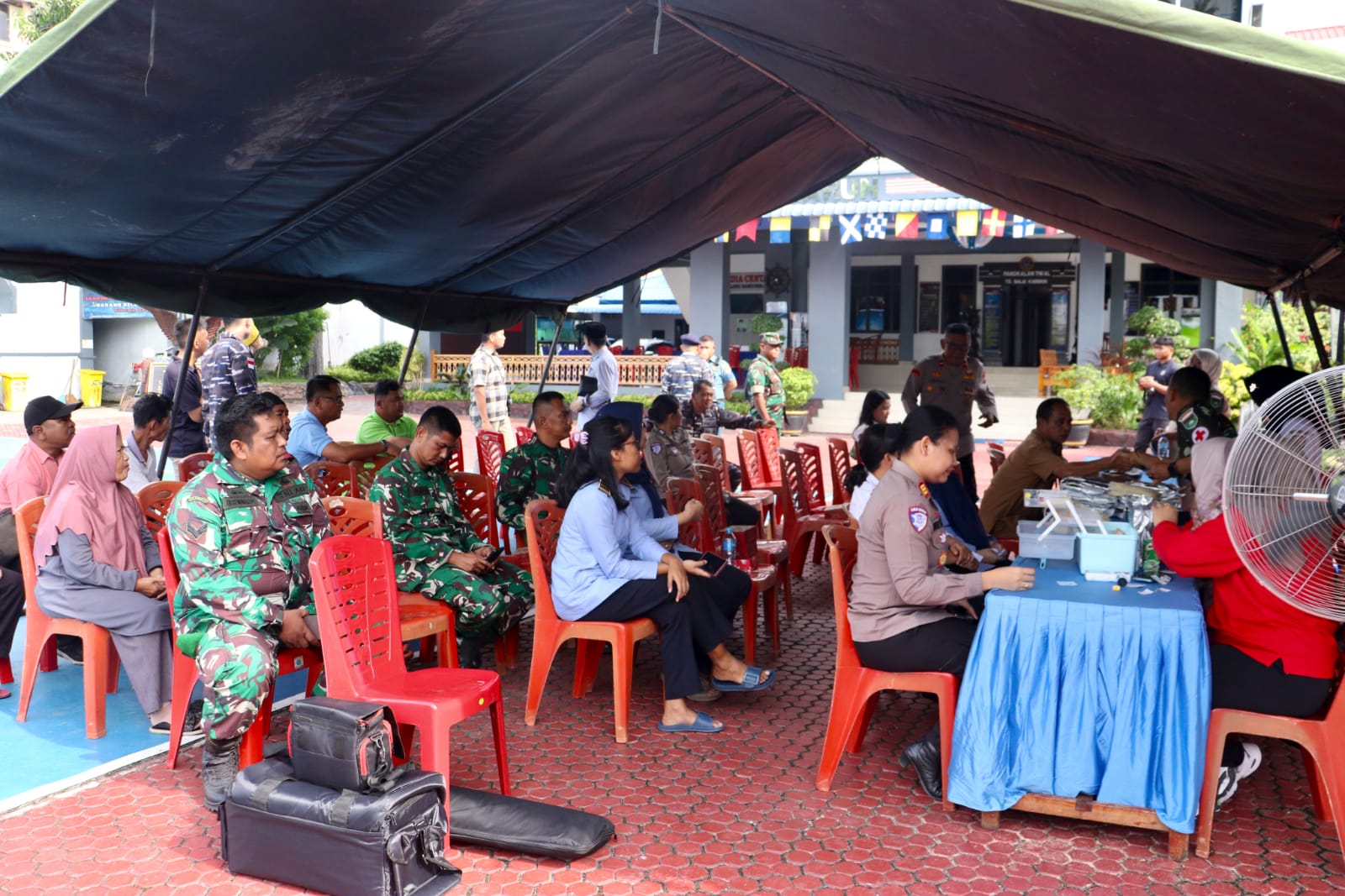 Kegiatan Bakti Kesehatan diisi dengan pendaftaran, pemeriksaan skrining, donor darah, pengobatan gratis, serta pembagian paket sembako kepada warga yang membutuhkan. Antusiasme masyarakat terlihat dari tingginya jumlah peserta yang mengikuti rangkaian kegiatan sejak pagi.