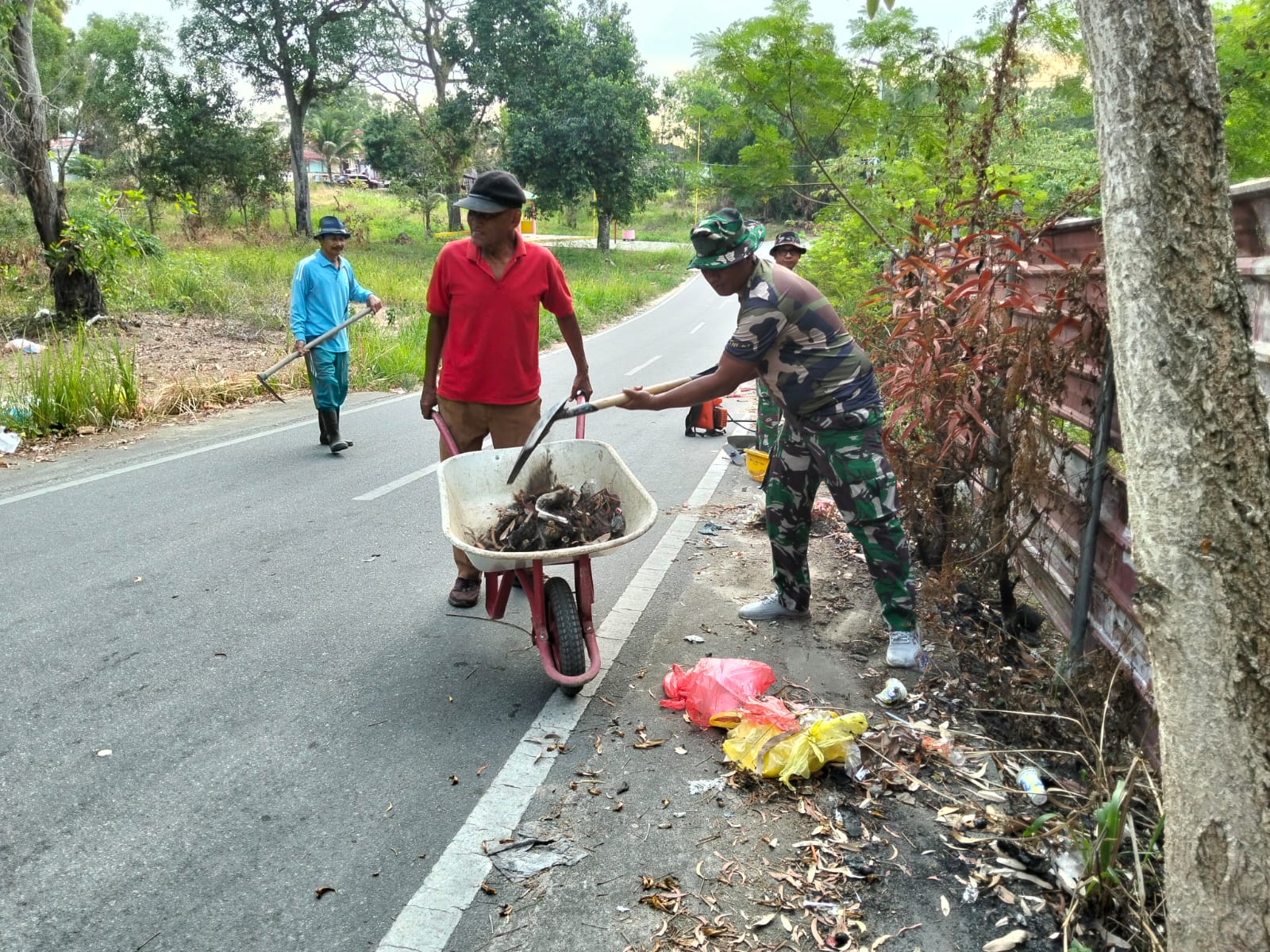 Karimun, 8 Februari 2026 – Personil Koramil 01/Balai melaksanakan kegiatan gotong royong bersama masyarakat di Jalan depan SMP Negeri 03 Meral, Kel. Baran Barat, Kec. Meral, pada hari Minggu, 8 Februari 2026. Kegiatan ini bertujuan untuk meningkatkan kebersihan dan keindahan lingkungan sekitar.