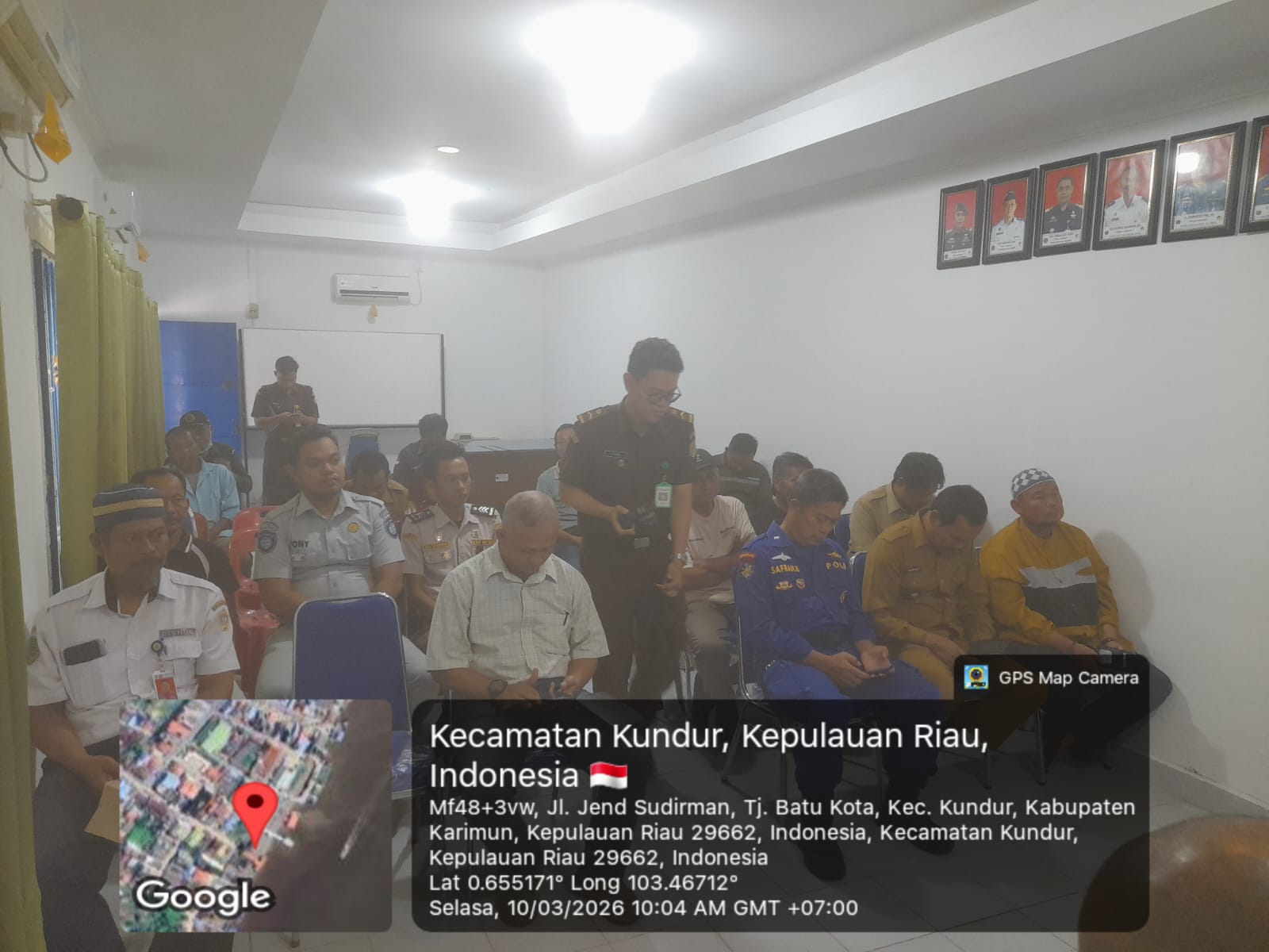 Kegiatan tersebut dihadiri oleh Camat Kundur, Camat Belat, perwakilan Kepala Cabang Kejaksaan Negeri (Kacabjari) Karimun di Tanjung Batu, Kapolsek Kundur, Danramil 03/Kundur, perwakilan KSOP Pelabuhan Tanjungbatu, Kepala UPT Dinas Perhubungan Kecamatan Kundur, perwakilan Karantina Hewan dan Tumbuhan, Karantina Kesehatan Pelabuhan, Kepala Puskesmas Tanjungbatu, para agen kapal di Pelabuhan Tanjungbatu, serta sejumlah undangan lainnya. Secara keseluruhan rapat diikuti oleh sekitar 34 peserta.