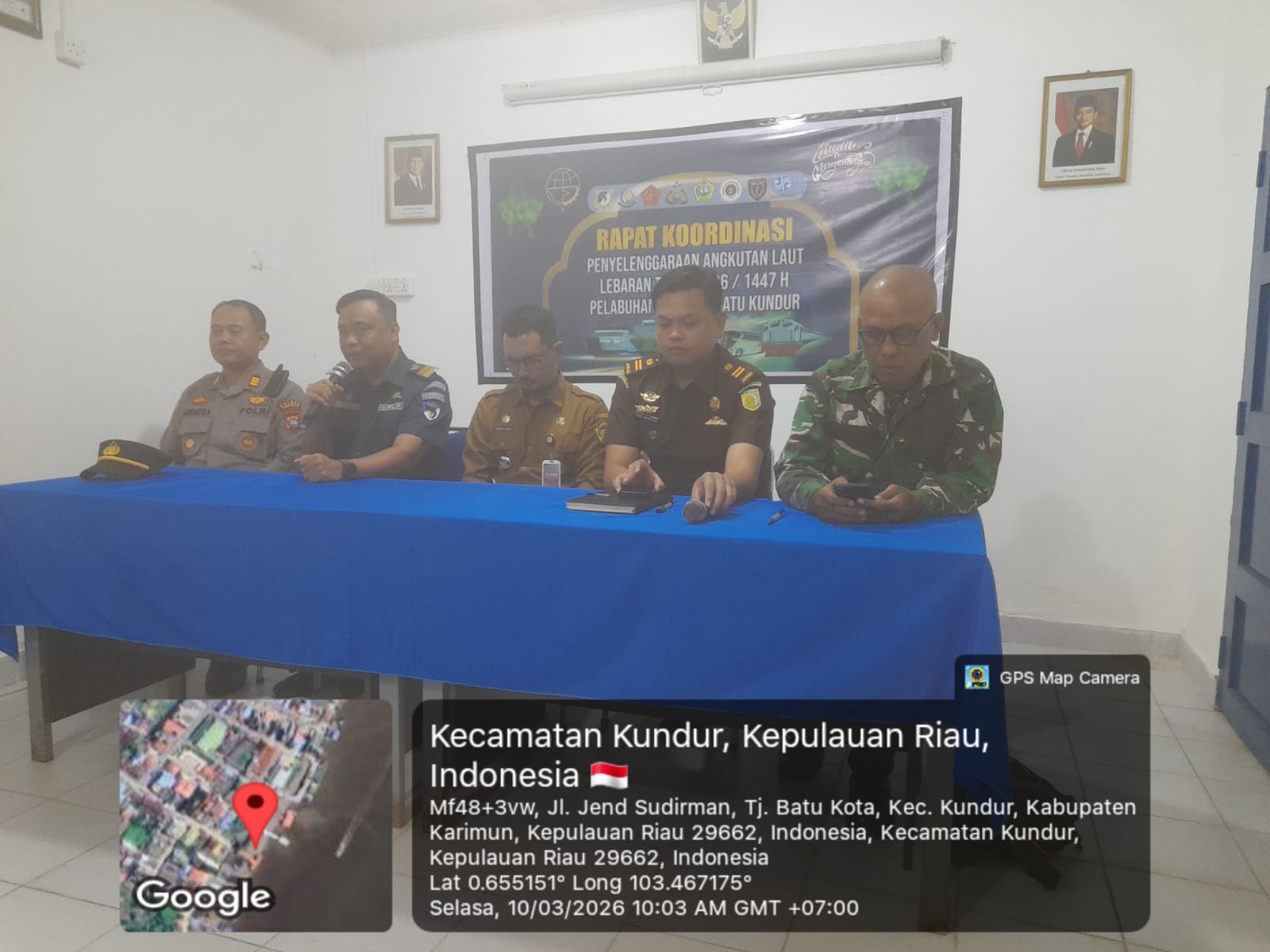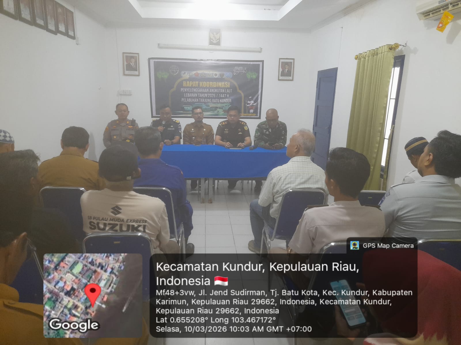 Kundur – Pemerintah Kecamatan Kundur bersama sejumlah instansi terkait menggelar Rapat Koordinasi Penyelenggaraan Angkutan Laut Lebaran Tahun 1447 H/2026 M di Pelabuhan Tanjungbatu, Kecamatan Kundur, Selasa (10/3/2026).