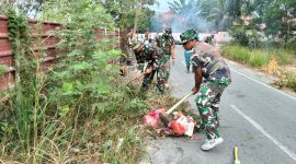 KODIM 0317/TBK PELORPORI KERJA BAKTI GERAKAN INDONESIA ASRI WUJUDKAN KARIMUN BEBAS SAMPAH