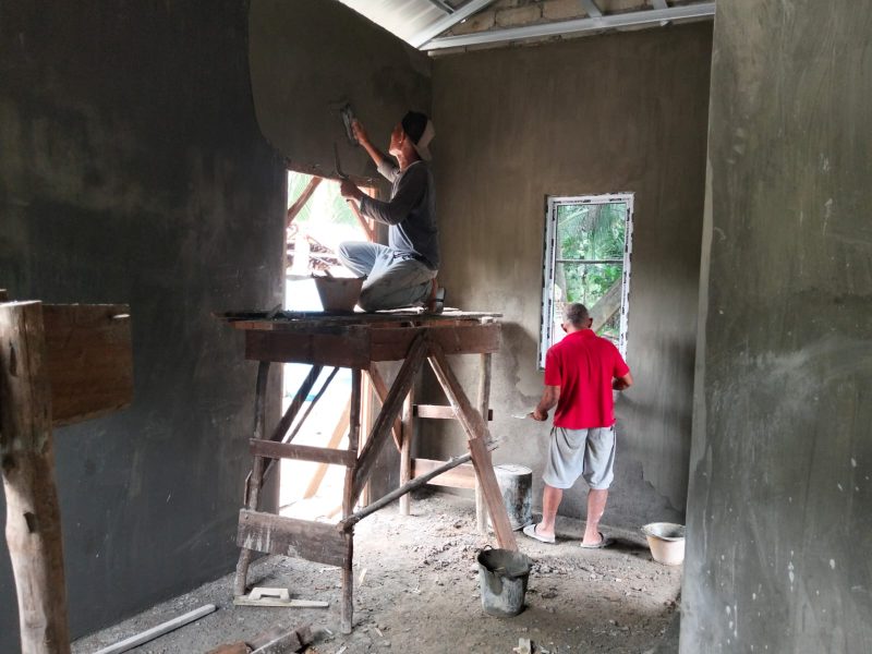 Pada hari ini, anggota Satgas bersama warga tampak kompak dan penuh semangat melakukan pekerjaan plester dinding rumah. Kegiatan ini merupakan bagian dari tahapan pembangunan yang bertujuan memperkokoh struktur bangunan agar lebih rapi, kuat, dan layak huni.