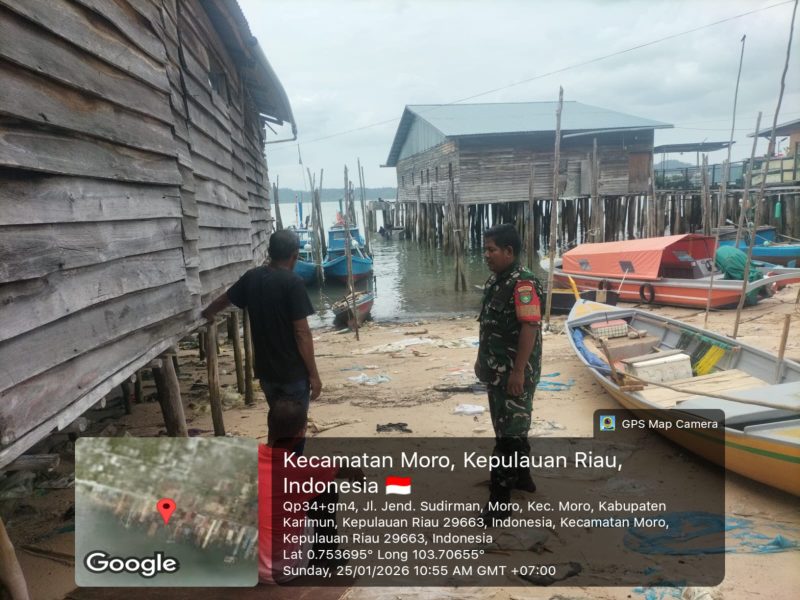 Karimun, 25 Januari 2026 – Sertu Guslim, Babinsa Desa Jang, Koramil 02/Moro, Kodim 0317/TBK, melaksanakan komsos dengan warga binaan, Bapak Jamaludin, pada hari Minggu, 25 Januari 2026, pukul 10.30 WIB. Kegiatan ini bertujuan untuk menjalin hubungan silaturahmi dan memberikan himbauan tentang perkiraan cuaca yang tidak menentu.