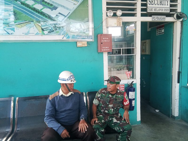 Karimun, 8 Maret 2026 – Sertu Hendra Gunawan, Babinsa Kel. Tebing Koramil 04/Tebing Kodim 0317/TBK, melaksanakan kegiatan komsos dengan security PLTD Bukit Caruk, Minggu (8/3) pukul 10.30 WIB.