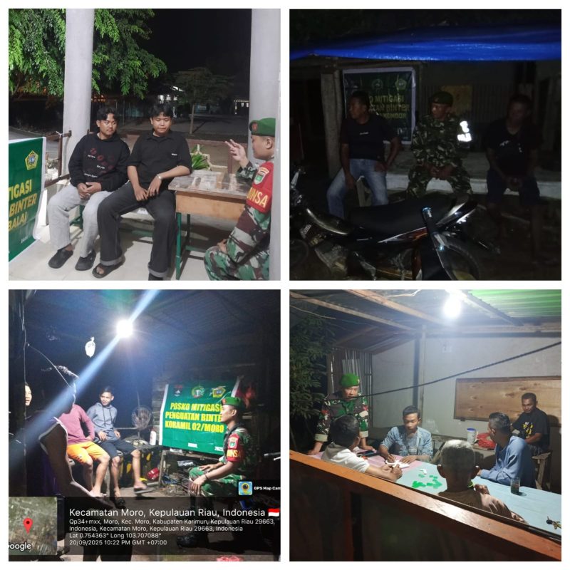 Karimun – Sabtu (20/9/2025) malam, Kodim 0317/TBK bersama komponen pendukung melaksanakan Ronda Kampung bersama dari pukul 22.00–24.00 WIB di empat lokasi berbeda.