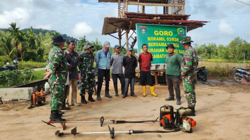 Kundur – Personel Koramil 03/Kundur melaksanakan kegiatan gotong royong bersama masyarakat binaan di RT 01 RW 02 Batu Putih, Kelurahan Gading Sari, Kecamatan Kundur, Jumat (14/11/2025). Kegiatan dimulai pukul 08.00 WIB dan berfokus pada pembersihan serta pemotongan rumput dan pohon pohon tinggi yang dapat menghalangi pandangan pengendara Sepeda Motor maupun Mobil, di kiri–kanan jalan utama sepanjang kurang lebih 600 meter, guna menghindari kecelakaan.